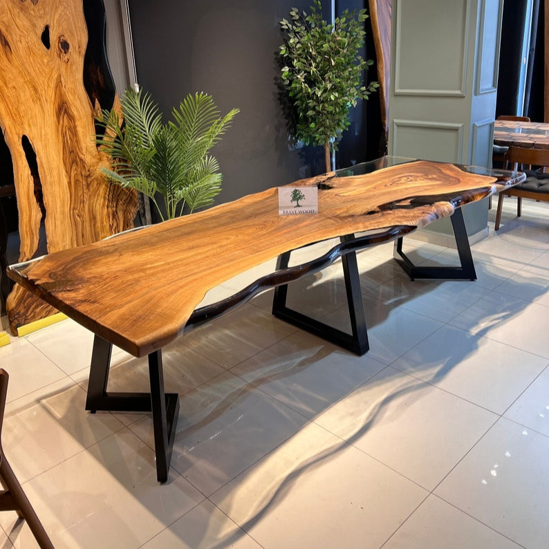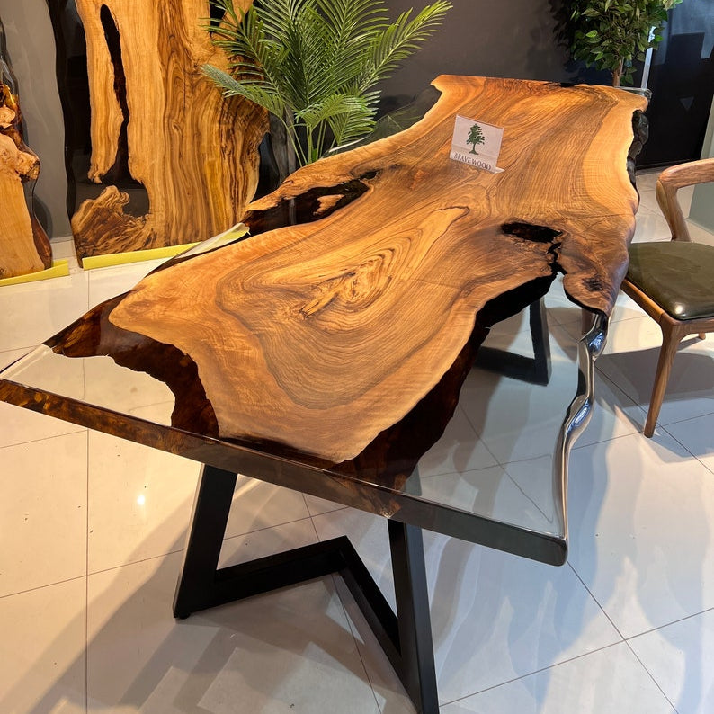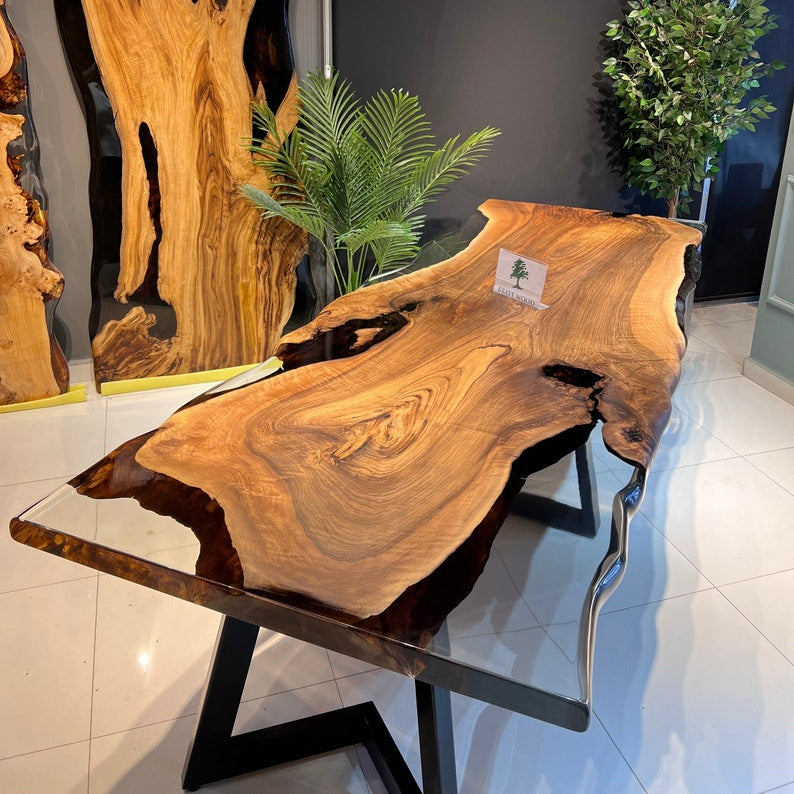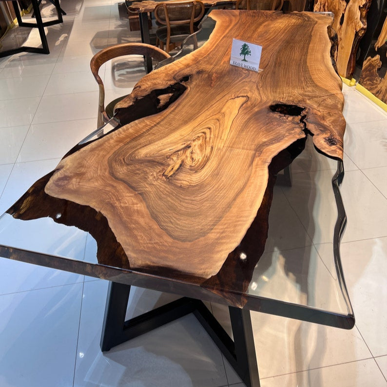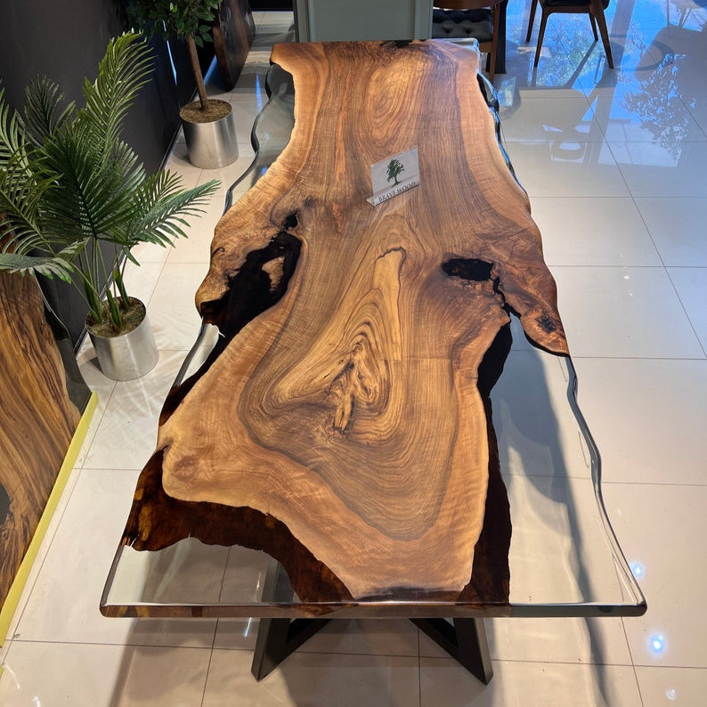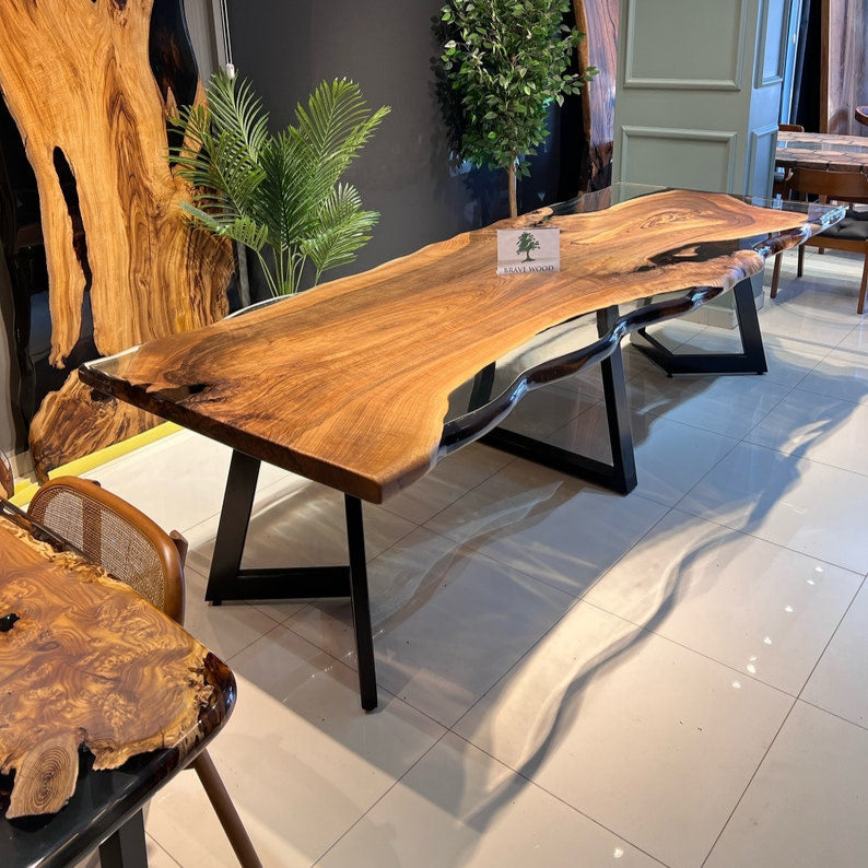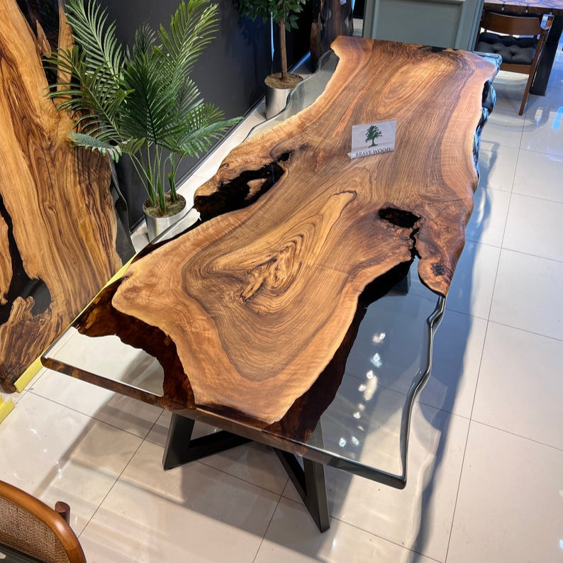 Elevate your home with our stunning Epoxy Walnut Dining Table, where the warmth of rich walnut wood meets the sleek elegance of crystal-clear resin. Handcrafted with precision, each live edge table tells a unique story — no two are ever alike. Perfect for dining rooms, conference areas, or stylish living spaces, this custom epoxy resin table is more than just furniture — it’s a bold statement of taste and craftsmanship.