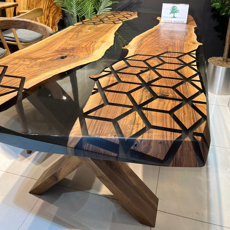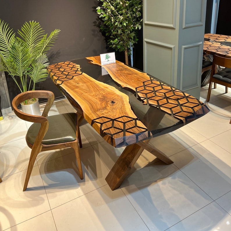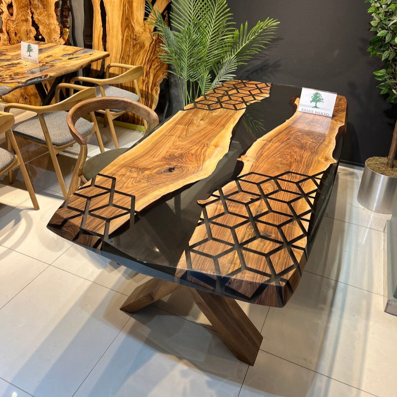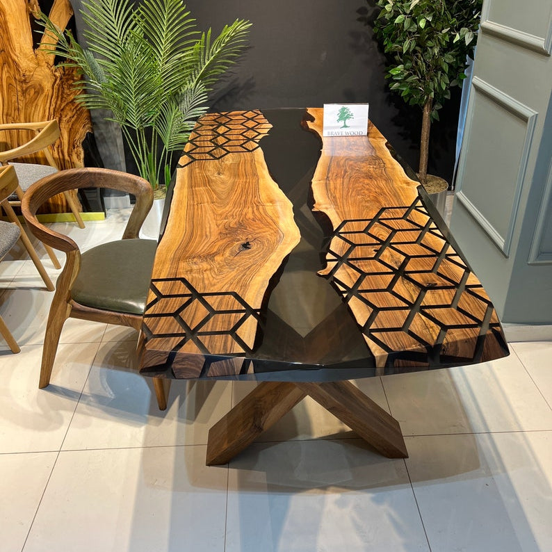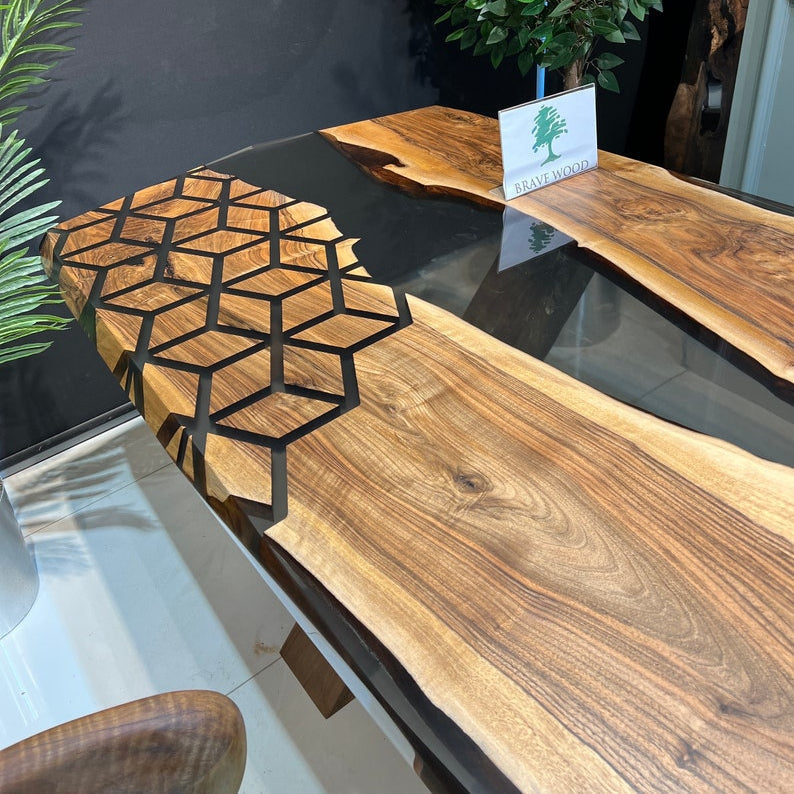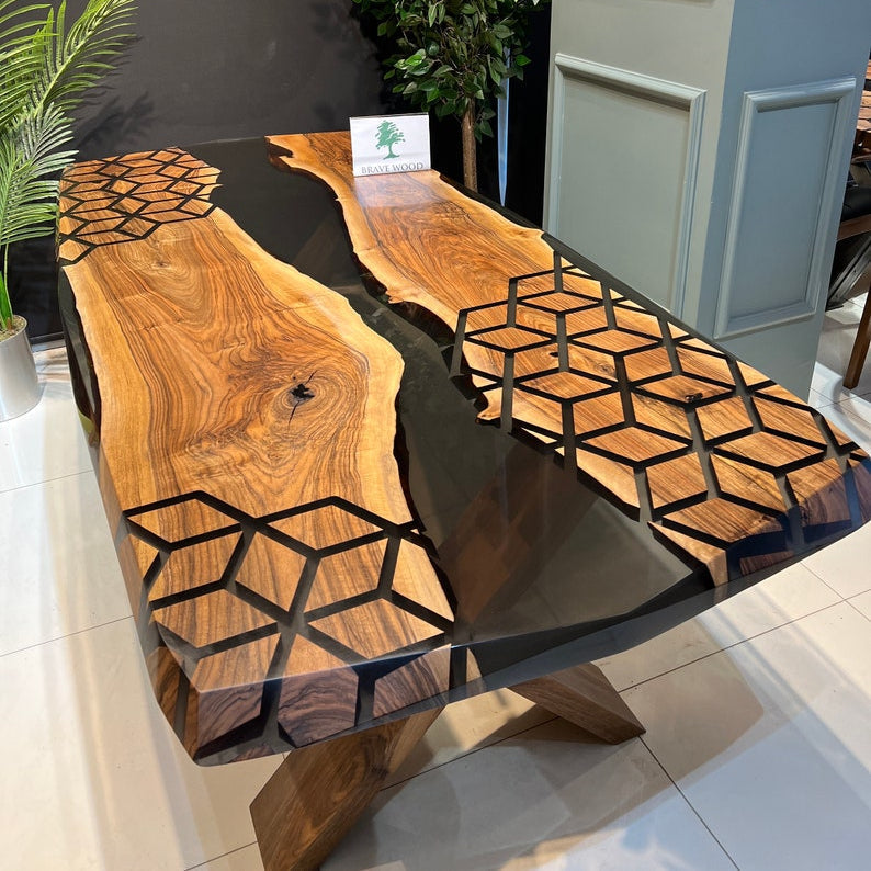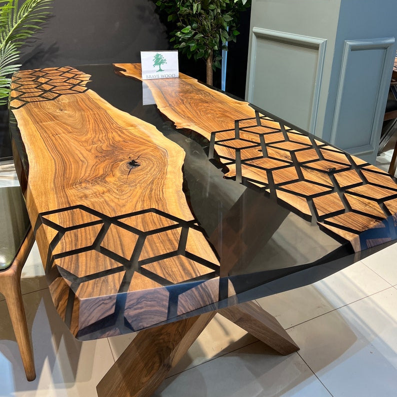Smoke epoxy table, Kitchen dining table, Honeycomb Epoxy Table