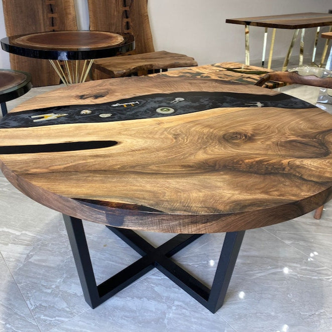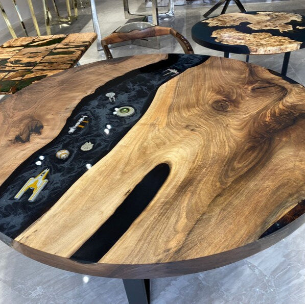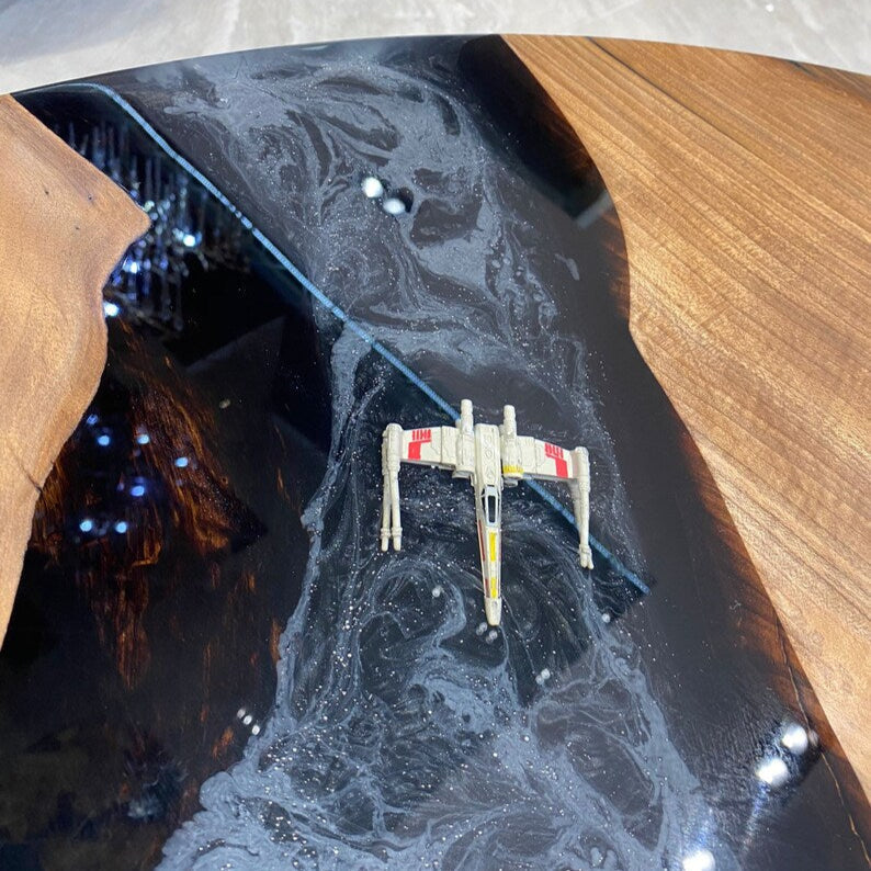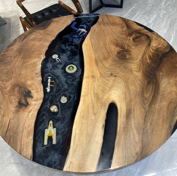 Star Wars Epoxy Table, Black Epoxy River Dining Table, Epoxy Round Table
