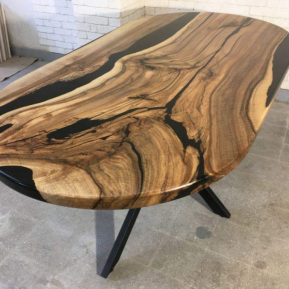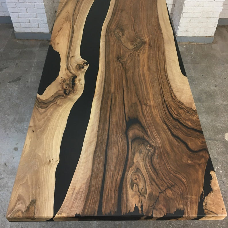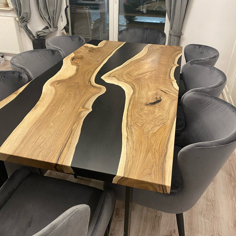 Make a powerful statement with our Walnut and Black Opaque Resin Table, where rich, natural walnut wood meets deep black resin in a dramatic, modern design. This handcrafted piece exudes sophistication and edge, making it perfect for luxury dining rooms, executive spaces, or high-impact interiors. Built for both beauty and everyday function, it’s more than a table — it’s a centerpiece.