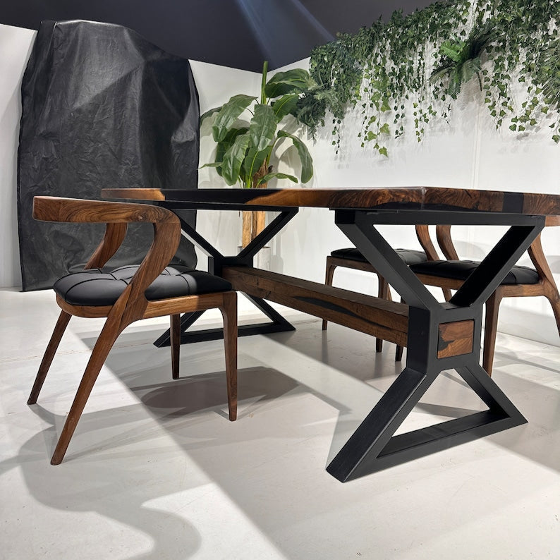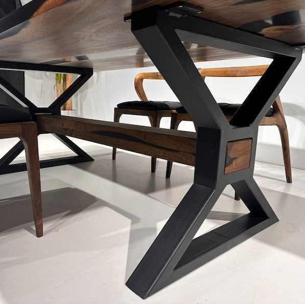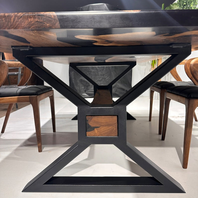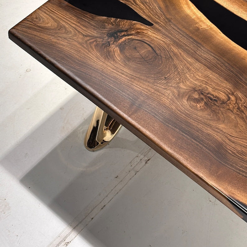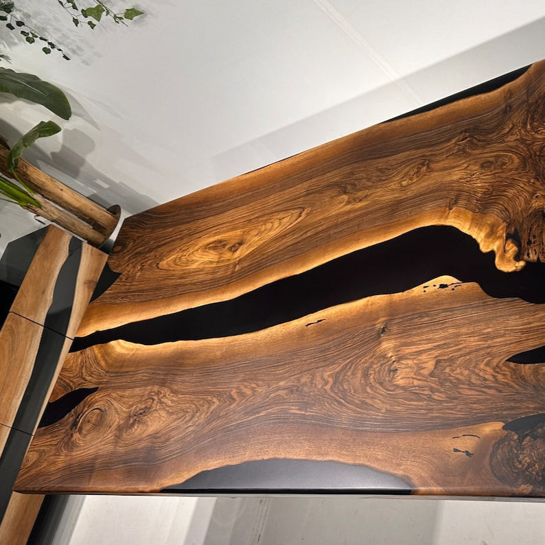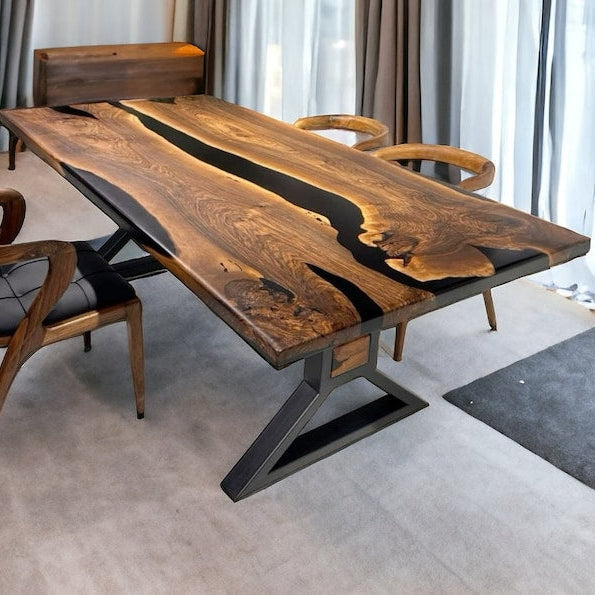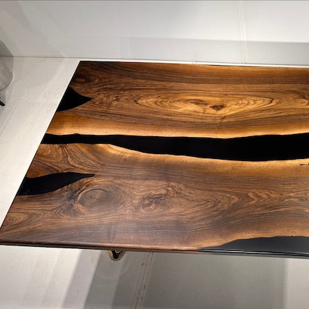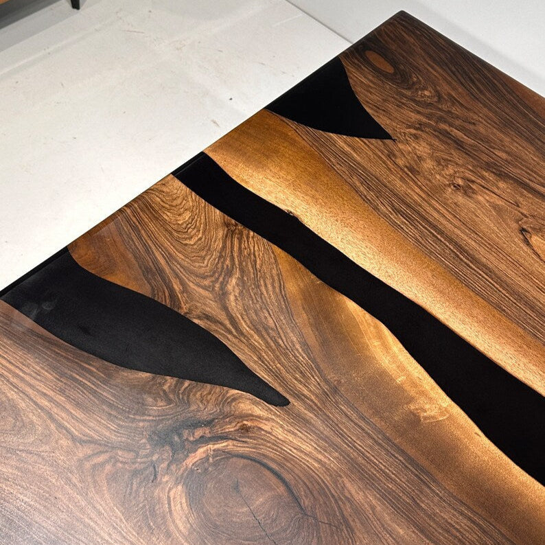Walnut Wood Epoxy Dining Table, Epoxy Table Top, Black Epoxy Table