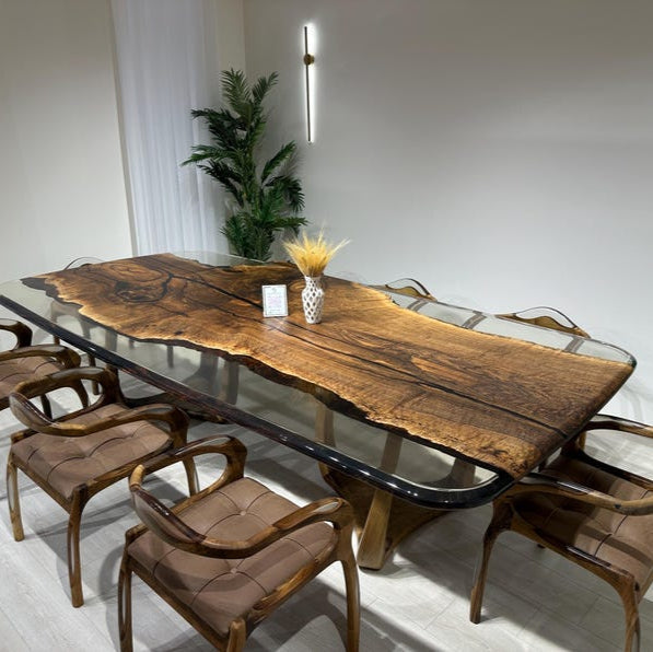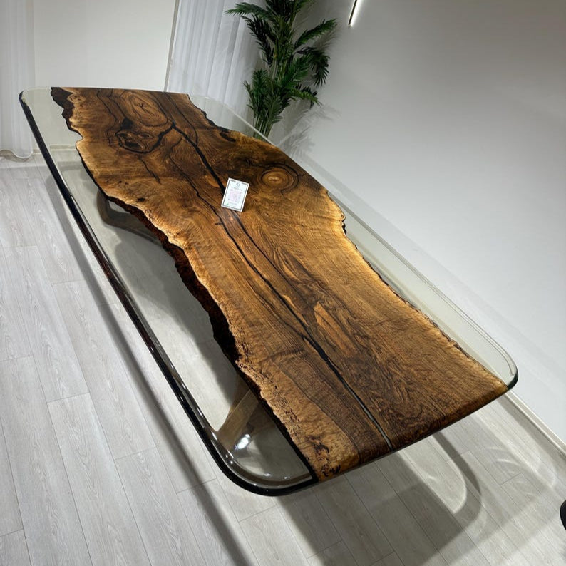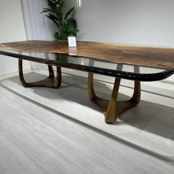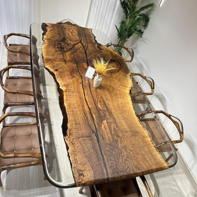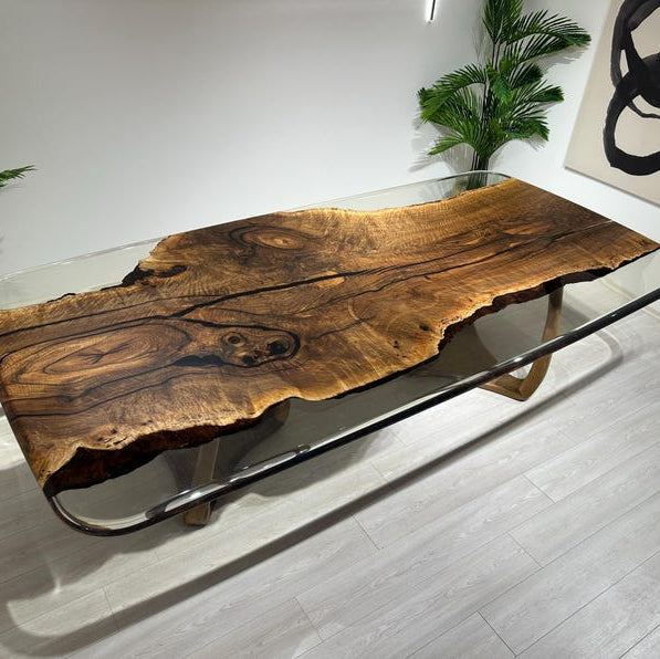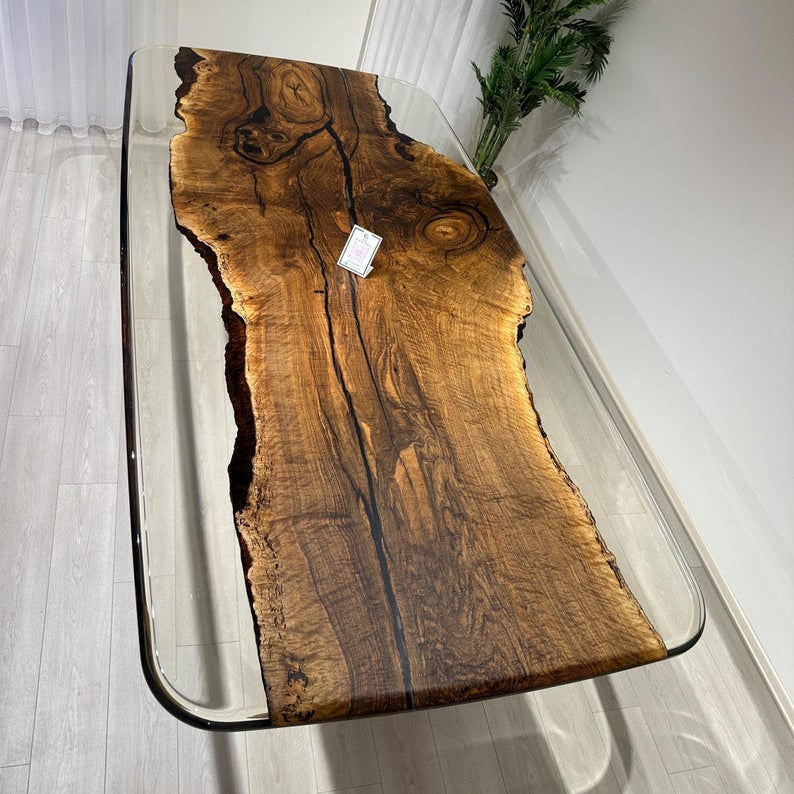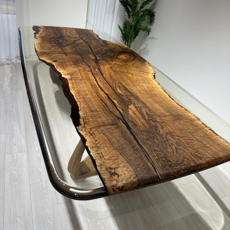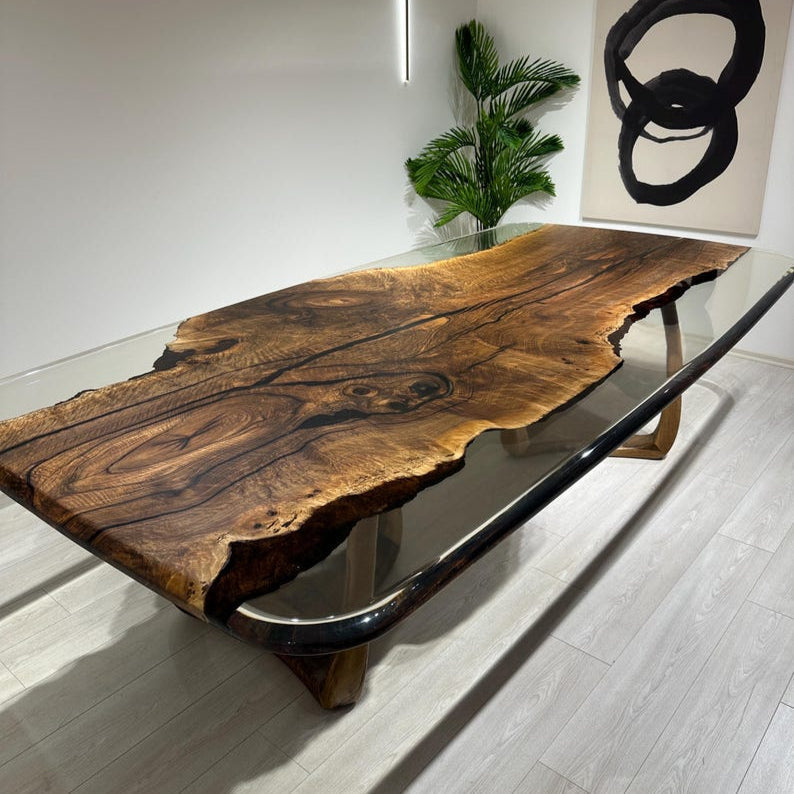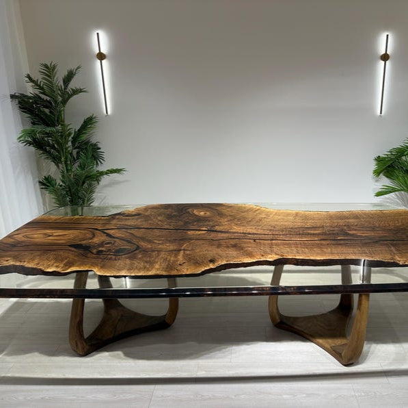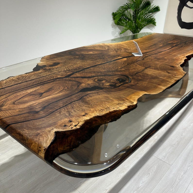 Walnut Office Desk, Clear Epoxy Meeting Table,Unique Natural Edge Table